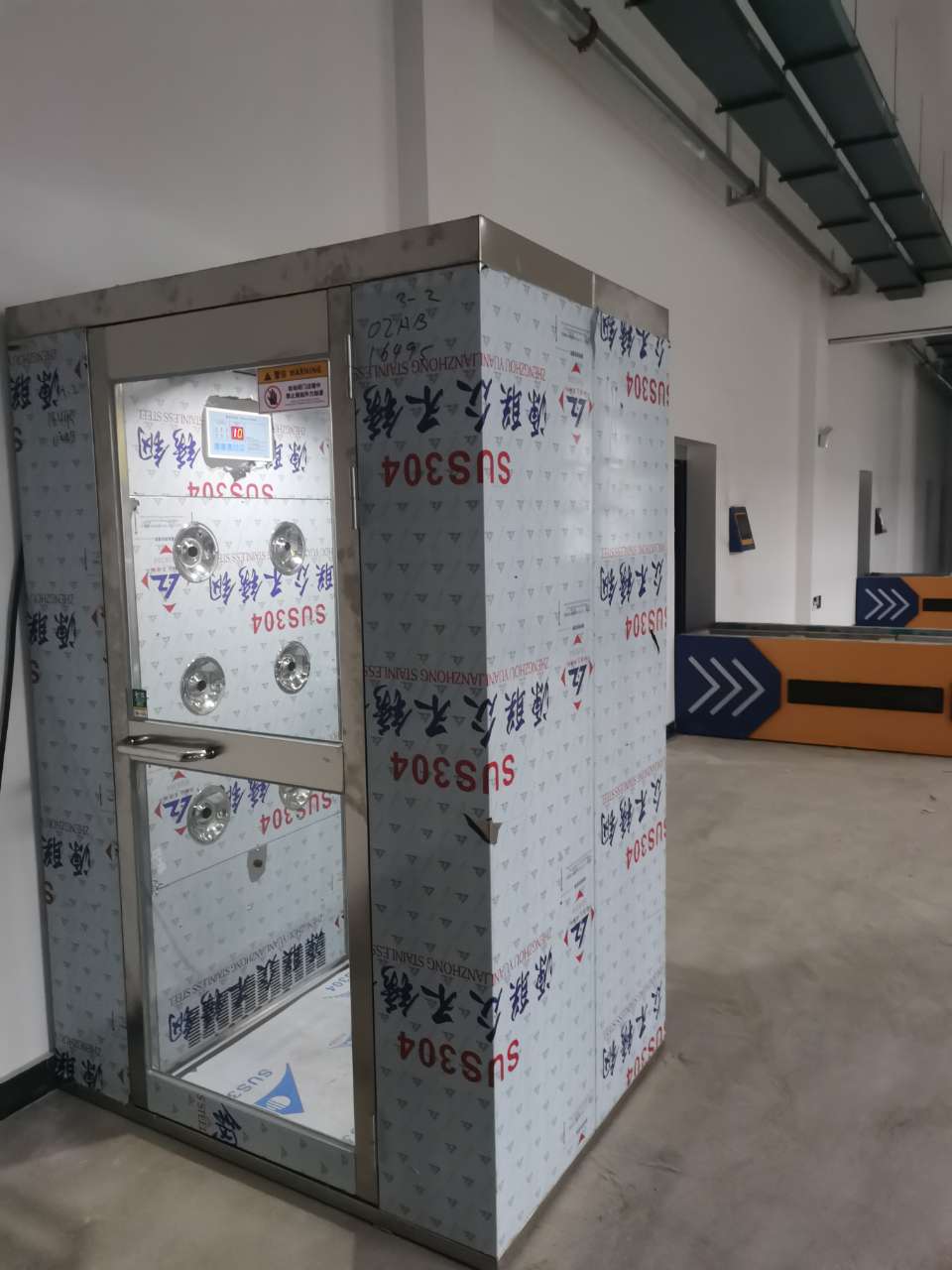 高速氣流吹淋技術是雙吹風淋室的關鍵。該設備利用兩側噴嘴同時噴射高速潔凈氣流,風速通常可達25m/s以上,部分型號甚至可達30m/s。高速氣流能夠迅速吹走人體或貨物表面的灰塵、毛發、微生物等污染物,確保進入潔凈區前完成有效凈化。