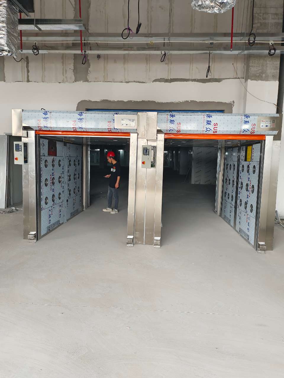 檢查風淋室的電氣系統。查看電線是否布置整齊、無破損、無短路隱患。測試接地裝置是否有效,接地電阻應符合相關安 全標準。同時,檢查控制面板上的按鈕、指示燈等電氣元件是否正常工作,操作應靈敏。
