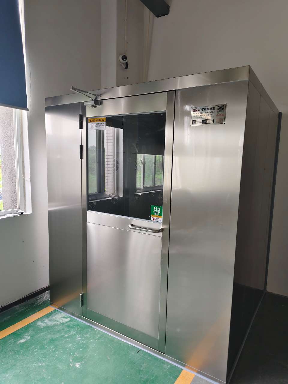 風機是風淋室的動力源,負責提供強勁的風力。高效過濾器能夠有效過濾空氣中的微小顆粒,能夠有效過濾掉0.3微米以上的塵埃粒子。初效過濾器則主要過濾較大的灰塵、毛發等雜質,起到初步過濾的作用,延長高效過濾器的使用時間。風淋噴嘴均勻分布在風淋室的頂部和兩側,確保能夠多角度地對進入人員或貨物進行吹掃。